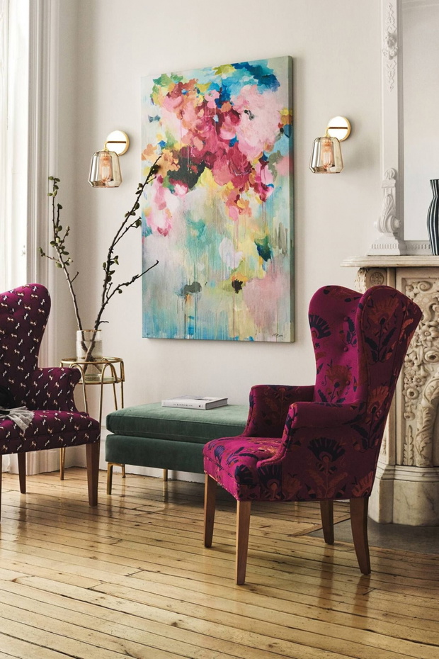 dekorując ściany, warto wybrać ścianę akcentową, na której powiesimy duży obraz lub położymy fototapetę.