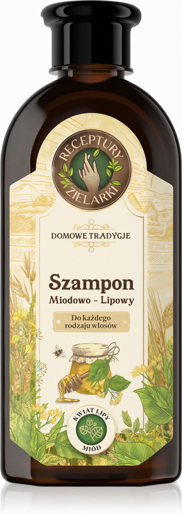 Szampon kosztuje 12,99 zł za 350 ml: RECEPTURY ZIELARKI, szampon do włosów wzmacniająco-odżywczy, miód i lipa, 350 ml | Drogeria Rossmann.pl.
