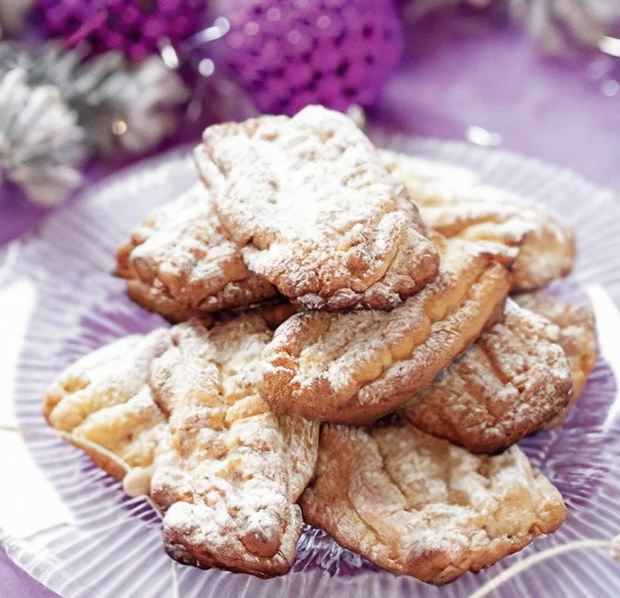 Wyrobić ciasto z żółtek utartych z cukrem, masła, mąki, proszku do pieczenia, cukru waniliowego, śmietany. Schłodzić. Zemleć w maszynce (przez sitko o dużych oczkach). Piec w 180°C na blasze wyłożonej pergaminem. Oprószyć cukrem pudrem.