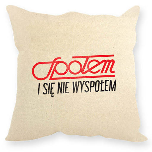 - Poduszki z dowolnie wybranym, zabawnym tekstami, np. logo sklepów SPOŁEM i dopiskiem „ale się nie wyspołem”, bądź zupełnie innym żartem, który znasz tylko ty i gospodarz zapraszający na imprezę. Ponadto będzie to również funkcjonalny prezent, z którego właściciele będą mogli korzystać, np. podczas snu;.