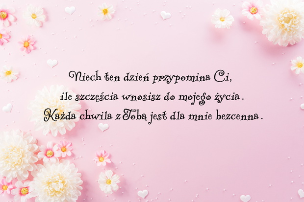 Niech ten dzień przypomina Ci, ile szczęścia wnosisz do mojego życia. Każda chwila z Tobą jest dla mnie bezcenna.