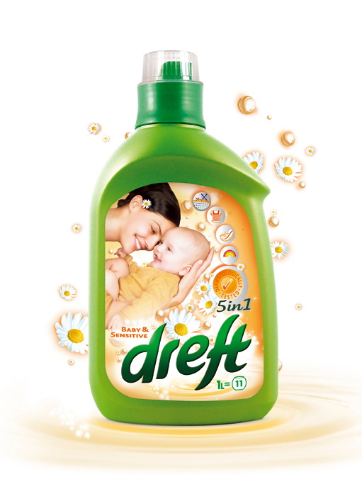 • Trzeci wariant płynu to Dreft Baby&Senistive, o niezwykłej delikatności działania, testowany i rekomendowany dla osób o wrażliwej skórze. Dreft B&S mimo swej delikatności również zachowuje główne walory produktu. Nie ma nic delikatniejszego dla naszych ubrań.