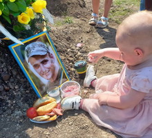 Malutka dziewczynka w różowej sukience siedzi na ziemi. Przed nią stoi fotografia zmarłego w walkach w Ukrainie ojca. Jest dzień urodzin dziecka. Mama przyprowadziła córkę na grób, bo "chciała zjeść śniadanie z tatą. Internauci nie kryją łez widząc tę fotografię.