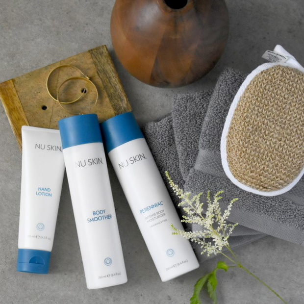 .Jeśli jesteś posiadaczką skóry ze szczególną skłonnością do przesuszania, po prysznicu możesz sięgnąć po Perennial, czyli bezzapachowy balsam nawilżający do ciała Nu Skin®. Eksperci marki wyselekcjonowali ekstrakt z cebulki narcyza wielokwiatowego, który zwiększa trwałość komórek skóry i poprawia jej naturalne mechanizmy obronne przed drażniącymi czynnikami zewnętrznymi. Suche powietrze, wysokie temperatury czy morski wiatr nie będą Ci straszne. Po zastosowaniu ciało stanie się gładsze i wyraźnie nawilżone. Szukasz kosmetyku o maksymalnie szybkim wchłanianiu? Takiego, który pozwoli Ci zaoszczędzić jeszcze więcej czasu. Być może idealnym rozwiązaniem dla Ciebie okaże się Body Smoother. Kompozycja aloesu, NaPCA i alantoiny zatrzymuje wilgoć w skórze i koi, kiedy jest podrażniona. Produkt nakładaj na lekko wilgotną skórę i wmasowuj okrężnymi ruchami.