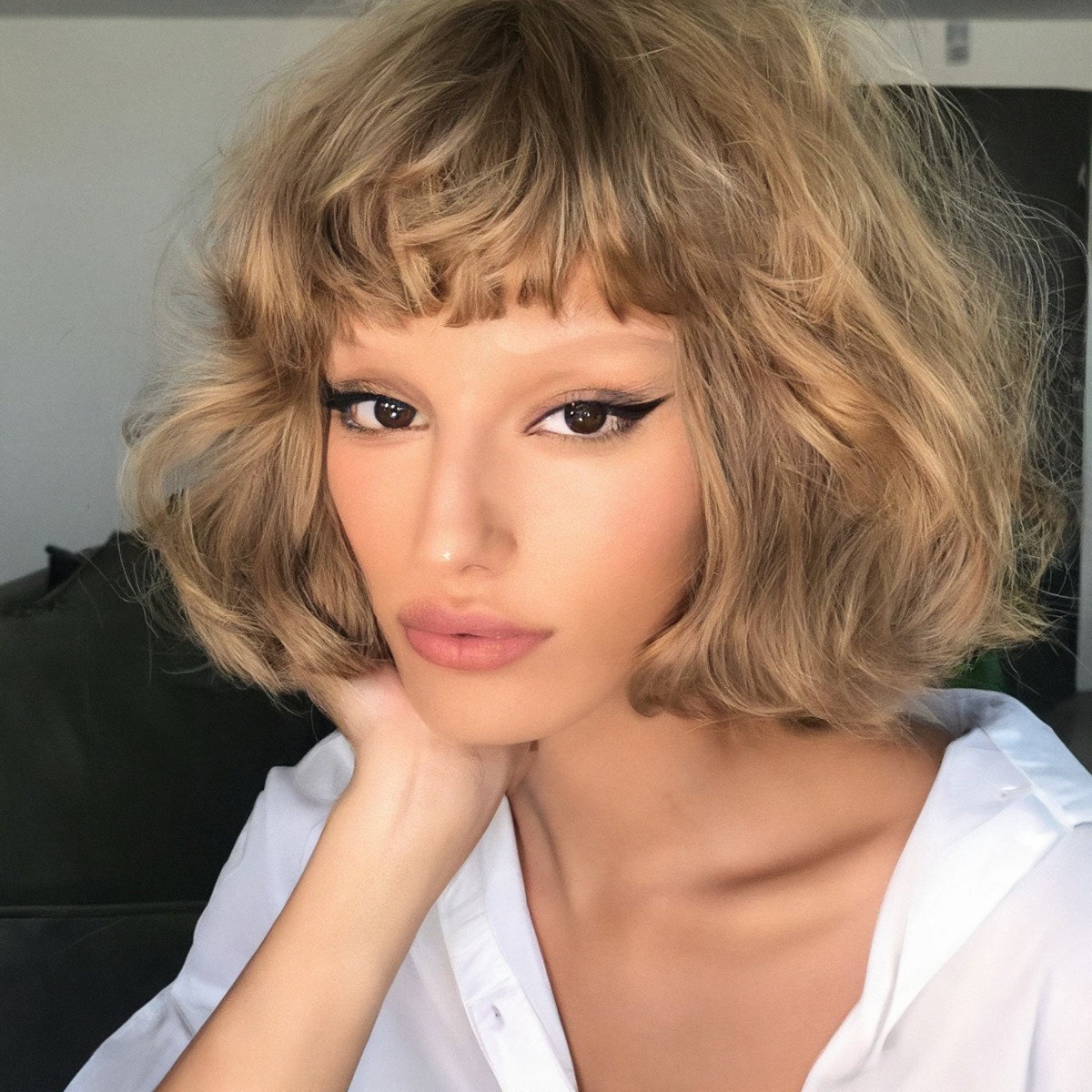 Jeśli chodzi o grzywkę, sprawdzi się zarówno ta prosta, jak i skierowana na boki. Taka fryzura będzie pasować każdej kobiecie.
