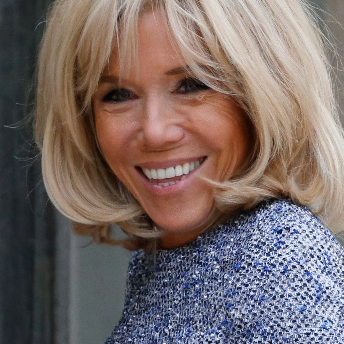 Odsłonięcie twarzy wydaje się w tym przypadku krokiem dość odważnym i nietypowym. Tym bardziej, że twarz Brigitte Macron naprawdę wygląda wspaniale! Firankowa, dobrze wymodelowana "sprytna grzywka" zakryła zmarszczki na czole, a na jej twarzy – poza okolicami ust i oczu – nie widać zbyt wielu oznak upływającego czasu.