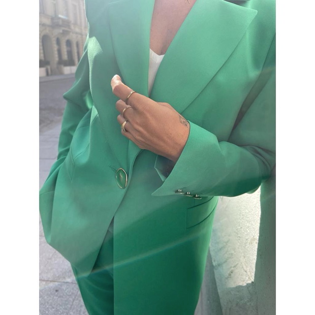 Kasia Sokołowska jest niekwestionowaną ikoną stylu - nigdy nie bała się odważniejszych eksperymentów modowych, czym zdecydowanie wyróżnia się w raczej zachowawczo ubierającym się polskim show biznesie. Nas zachwyciła jej ostatnia stylizacja w supermodnym damskim garniturze w najgorętszym kolorze sezonu - zieleni.
