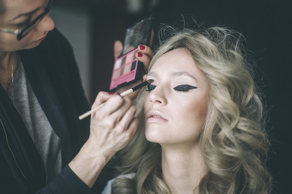 Makijaż w stylu retro to dzieło Magdy Atkins z Bobbi Brown. Kreskę namalowała czarnym Long Wear Gel Eyeliner Bobbi Brown, a w załamaniu powieki nałożyła jasnobrązowy cień.