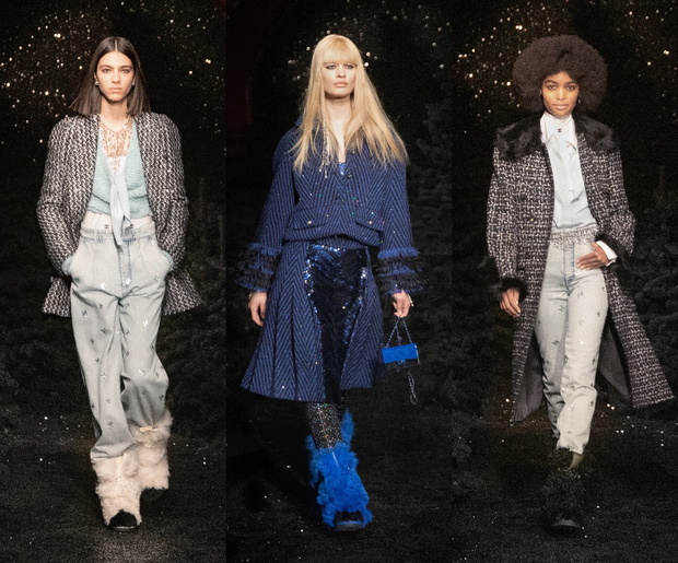 W tym sezonie na wybiegach króluje kolor niebieski – w total looku, czyli od stóp do głów, najlepiej w odcieniu baby blue, lazurowym, kobaltowym, indygo i stworzonym przy pomocy nieśmiertelnego, buntowniczego dżinsu. Chanel też w tym sezonie pokazało kilka sylwetek, które spodobają się marzycielkom wiecznie myślącym o niebieskich migdałach. Naszym zdaniem to jedna z najlepszych strategii, by przetrwać czas pandemii.