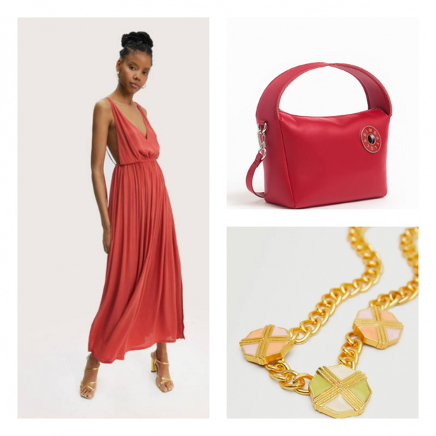 My podobną romantyczną sukienkę w odcieniu soczystych sierpniowych pomidorów malinowych znalazłyśmy w kolekcji polskiej marki The Odder Side. Model Tequila (569 zł) wprowadzi w stan upojenia zmysłowym, głębokim jak randkowe spojrzenia, dekoltem na plecach. Do tego ciepłego odcienia idealnie pasuje kolor złota mocnego łańcucha z wydatnymi zawieszkami z Mango (29,99 zł). A słodsze od francuskich makaroników minitorebki kupujemy w Bimba Y Lola - przyznajcie, że trudno się im oprzeć!