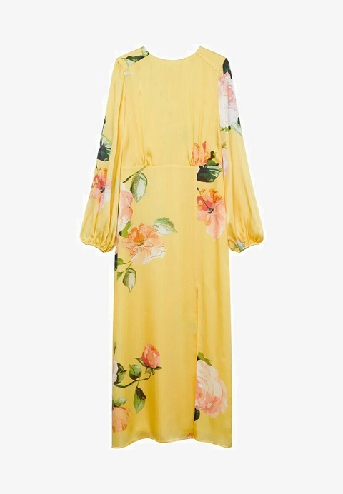 W tej sukience z hiszpańskiej sieciówki Mango (dostępna na Zalando) mogłybyśmy iść na bal debiutantek, jakie widziałyśmy w serialu "Bridgertonowie" - ma w sobie angielską elegancję i powściągliwość rodem z królewskiego dworu. Malarskie kwiaty, długość midi, szerokie, długie rękawy i ten kolor - trudno się oprzeć żółci w tym sezonie!