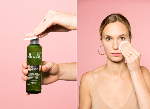Po całym dniu spędzonym na bieganiu po mieście, skórze należy się odpowiedni relaks. Pozbycie się makijażu to absolutna podstawa. Zarówno w misjach specjalnych (np. wodoodporna maskara i mocny podkład, ponieważ właśnie wróciła z wieczornego wypadu do restauracji) jak i prostszych zadaniach, Ania sięga po detoksykujący żel micelarny Elixir Jeunesse, jak większość gamy od Yves Rocher zawiera wysoce skoncentrowany wyciąg z aphloii i pomaga w walce z miejskim smogiem. Zaczyna od okolic oczu, kończy na całej twarzy.