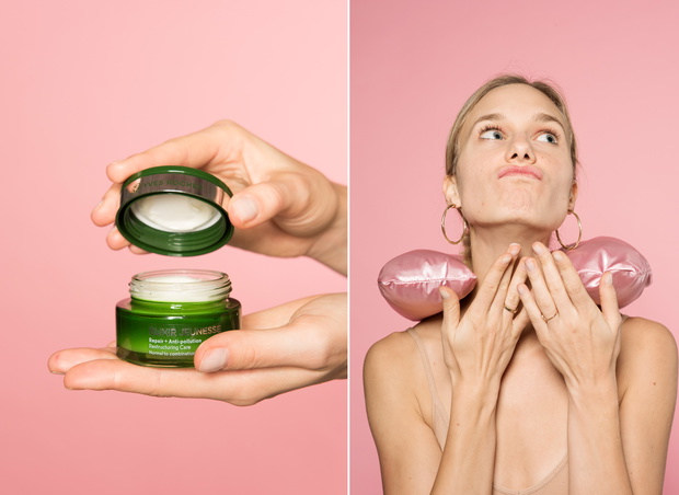 Kiedy twarz jest już całkiem saute przed snem, Ania wykańcza wieczorny rytuał kremem-maską z 4 patentami zapobiegającymi starzeniu się skóry. Wygładza, nawilża (w nocy to szczególnie ważne, zwłaszcza, jeśli śpi przy włączonym kaloryferze – skóra się przesusza) i rozświetla.
