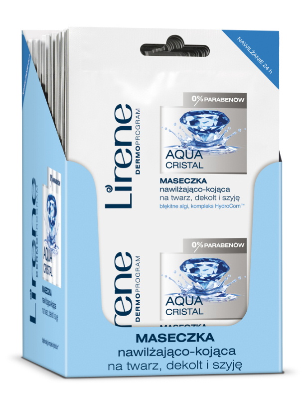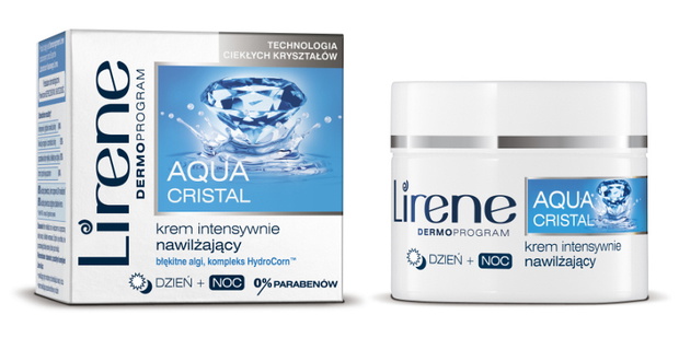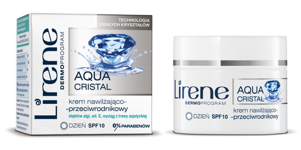 Linia nowych kosmetyków Lirene Aqua Cristal wykorzystuje Technologię Ciekłych Kryształów. Innowacyjna budowa kremów pomaga głębiej wnikać składnikom aktywnym w strukturę skóry, intensywnie nawilżając, stabilizując nawodnienie, zmniejszając ubytek wody oraz dostarczając składników odżywczych. Receptury kremów zawierają minerały oraz błękitne algi, znane z właściwości nawilżających.
