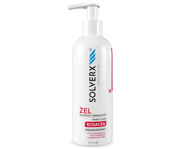 Żel przeznaczony do codziennego mycia i demakijażu twarzy i oczu, dedykowany do skóry z problemem trądziku różowatego.