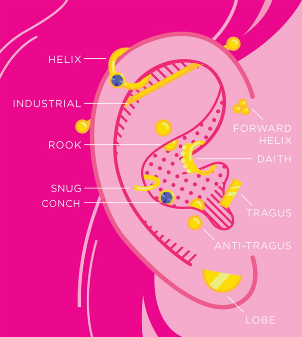 Lobe to najbardziej popularny rodzaj przekłucia - czyli dziurki w standardowym miejscu - na środku płatka ucha. W tym sezonie jednak, podkręcamy nudnego lobe i dodajemy na płatku ucha kilka nowych przekłuć - tu już kwestia indywidualna, czy będą to trzy małe diamenciki, czy dwa kółka i wkręt, wszystko zależy od twojej fantazji. Im więcej, tym lepiej.