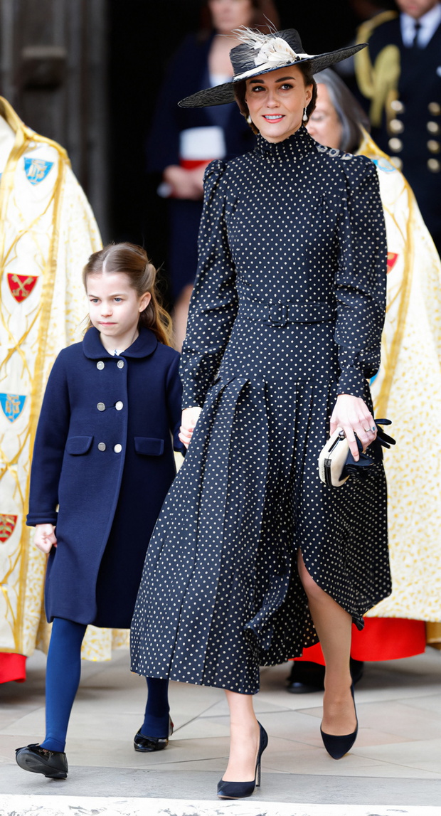 LONDON, UNITED KINGDOM – MARCH 29: (EMBARGOED FOR PUBLICATION IN UK NEWSPAPERS UNTIL 24 HOURS AFTER CREATE DATE AND TIME) Princess Charlotte of Cambridge and Catherine, Duchess of Cambridge attends a Service of Thanksgiving for the life of Prince Philip, Duke of Edinburgh at Westminster Abbey on March 29, 2022 in London, England. Prince Philip, Duke of Edinburgh died aged 99 on April 9, 2021. (Photo by Max Mumby/Indigo/Getty Images)