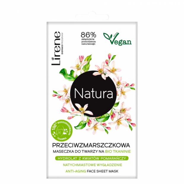 Przeciwzmarszczkowa maseczka do twarzy na bio tkaninie - hydrolat z kwiatów pomarańczy od Lirene Natura
