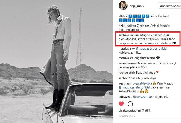 Co też wypomnieli Magdzie Gessler fani Anji Rubik: " Pani Magdo z całym szacunkiem, czy Pani Anja komentuje to, ze ma Pani nadwagę?", "Pani Magdo, nie jest Pani lekarzem i tez nie ma Pani idealnej figury, żeby wydawać jakiekolwiek sady o innych. To zwyczajnie brak kultury", piszą obserwatorzy Anji Rubik. W obronie modelki stanęła też Maja Sablewska, która dała prowadzącej "Kuchenne rewolucje" lekcję dobrych manier: