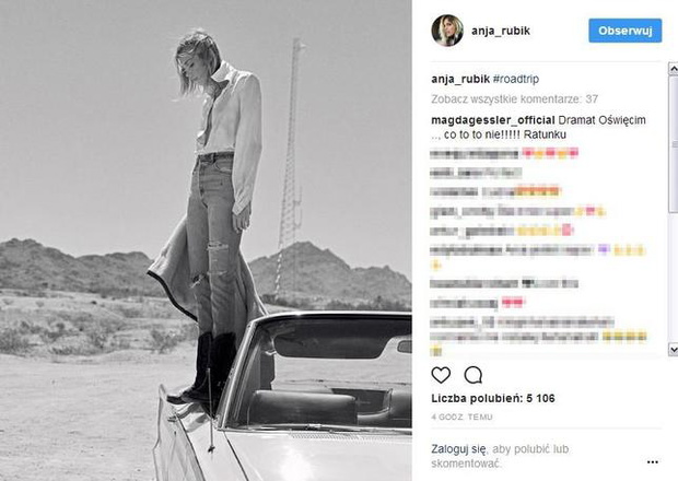 "Dramat... Oświęcim... co to to nie! Ratunku" napisała w komentarzu pod zdjęciem Anji Rubik. W zasadzie nie wiemy jak to skomentować, ponieważ nie jest to zbytnio kulturalny wpis. Zwłaszcza, że Anja Rubik jest modelką o szczupłej budowie ciała, której zawód wymaga takiej a nie innej figury. Często zarzuca się jej anoreksję czy inne kłopoty z odżywianiem, jednak sama modelka nigdy nie potwierdziła tych plotek. Co nie zmienia faktu, że komentowanie czyiś zdjęć w takim tonie jest po prostu niesmaczne...