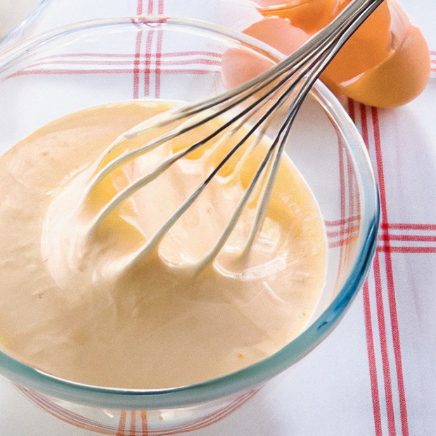 1. Żółtka ubijać z cukrem i solą na gęsty, jasny krem (można to robić ręcznie lub za pomocą miksera).