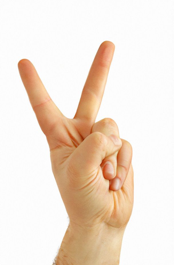 „V” utworzone przez palce środkowy i wskazujący