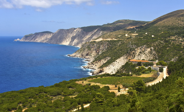 Jeżeli szukasz spokoju, z dala od tłumów i atrakcji z pierwszych stron katalogów biur podróży, Kefalonia jest dla ciebie idealna. Wyspa bywa nazywana „najpilniej strzeżoną grecką tajemnicą”, bo wciąż opiera się masowej turystyce. Musisz zobaczyć ją jak najszybciej, zanim wycieczkowa machina ruszy także tutaj. Dziś na Kefalonii nie ma jeszcze wielkich kompleksów hotelowych i kurortów, a po sezonie małe portowe miasteczka zamieniają się w senne wsie. Ich mieszkańcy zbierają miód i uprawiają winorośl – dojrzewa tu lokalny szczep Robola, który daje wyśmienite białe wino o głębokim smaku. I wciąż jeszcze trudnią się żeglowaniem. Nic dziwnego, skoro archipelag wysp na Morzu Jońskim, do którego zalicza się Kefalonia, to ojczyzna Odyseusza. Jego rodzinna Ithaki, „mniejsza siostra” Kefalonii, patrzy na nią z odległości zaledwie dwóch mil morskich.
