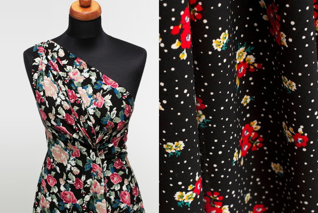 Nasza Ambasadorka wybrała 2 tkaniny od Textilmar: wiskozę w różane kwiaty i modną łączkę w kropki.