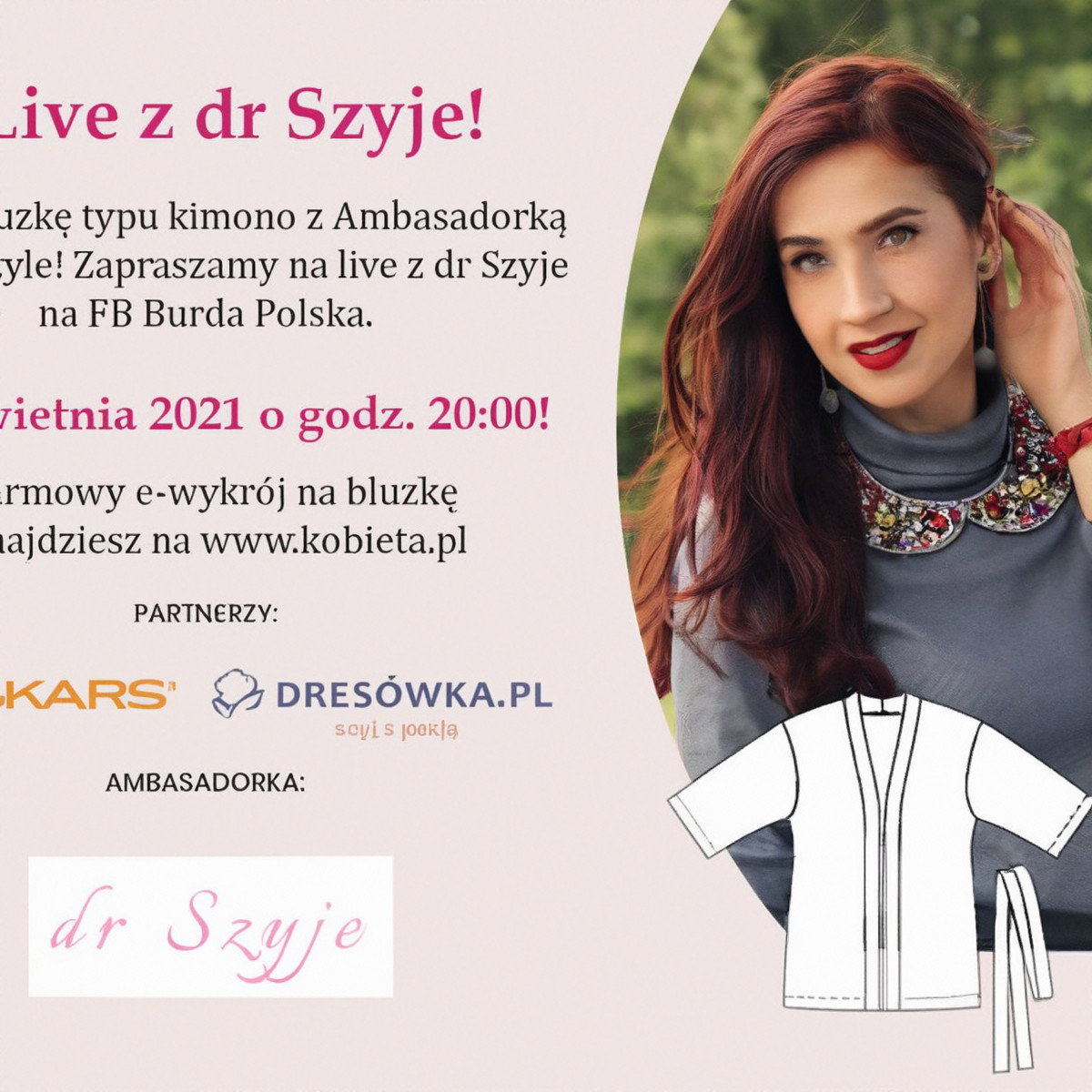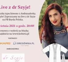 Zapraszamy na wspólne szycie na żywo! Pobierz darmowy e-wykrój i wspólnie z nami 28 kwietnia 2021 o godz. 20:00 uszyj modną bluzkę w stylu kimono.