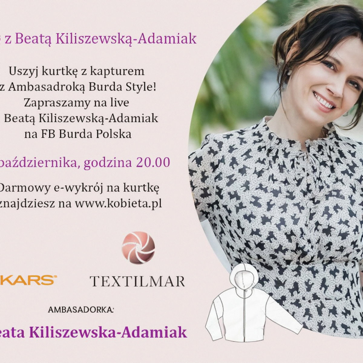W naszym sklepie znajdziecie mnóstwo wykrojów na ciekawe stylizacje. Polecamy Wam także live z naszą ambasadorką Beatą Kiliszewską-Adamiak, która uszyła damską kurtkę z kapturem. Darmowy e-wykrój na kurtkę znajdziecie TUTAJ.