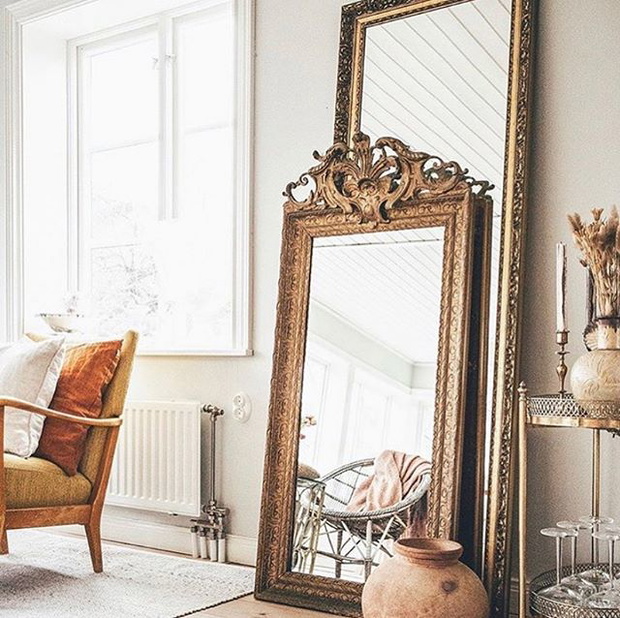 Jedynym z najprostszych trików na to by przestrzeń w domu wydawała się większa, bardziej przestronna jest zawieszenie dużego, jednak proporcjonalnego do wielkości wnętrza lustra. Będzie ono odbijać i rozpraszać światło, otwierać przestrzeń. Możesz zaszaleć z ramą, bogato zdobiona złota idealnie pasować będzie do delikatnego, jasnego wnętrza a prosta, czarna to świetny wybór do mieszkania w nowoczesny stylu. Lustro zawieś nad kominkiem, komodą lub stwórz dekorację z luster na pustej ścianie.