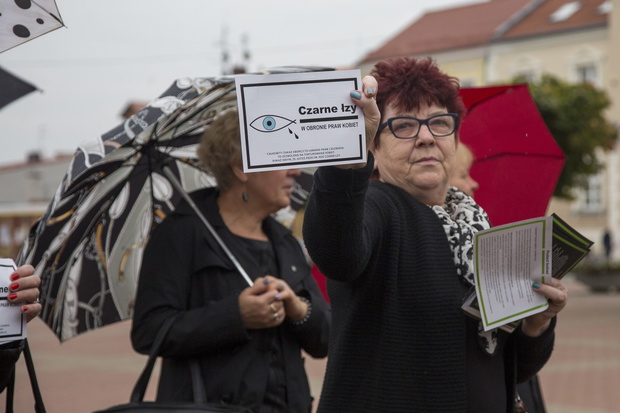 3.10.2016 Lomza Czarny protest , akcja zorganizowana przeciwko probie zaostrzenia przepisow antyaborcyjnych N/z manifestacja na Starym Rynku fot Marek Maliszewski/REPORTER