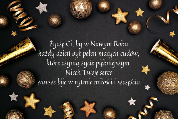 Życzę Ci, by w Nowym Roku każdy dzień był pełen małych cudów, które czynią życie piękniejszym. Niech Twoje serce zawsze bije w rytmie miłości i szczęścia.