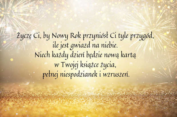 Życzę Ci, by Nowy Rok przyniósł Ci tyle przygód, ile jest gwiazd na niebie. Niech każdy dzień będzie nową kartą w Twojej książce życia, pełnej niespodzianek i wzruszeń.